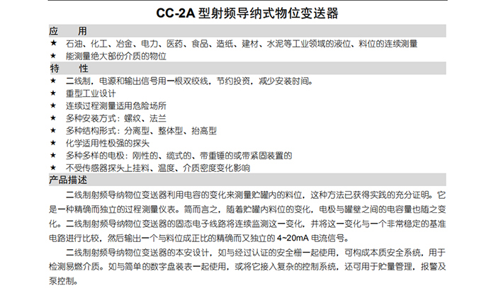 CC-2A型射頻導(dǎo)納式物位變送器