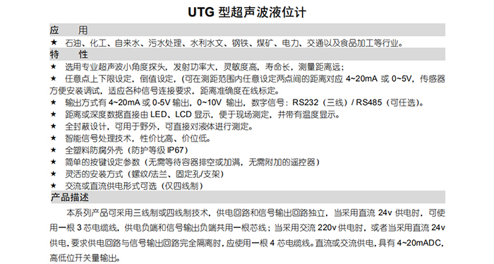 UTG型超聲波液位計